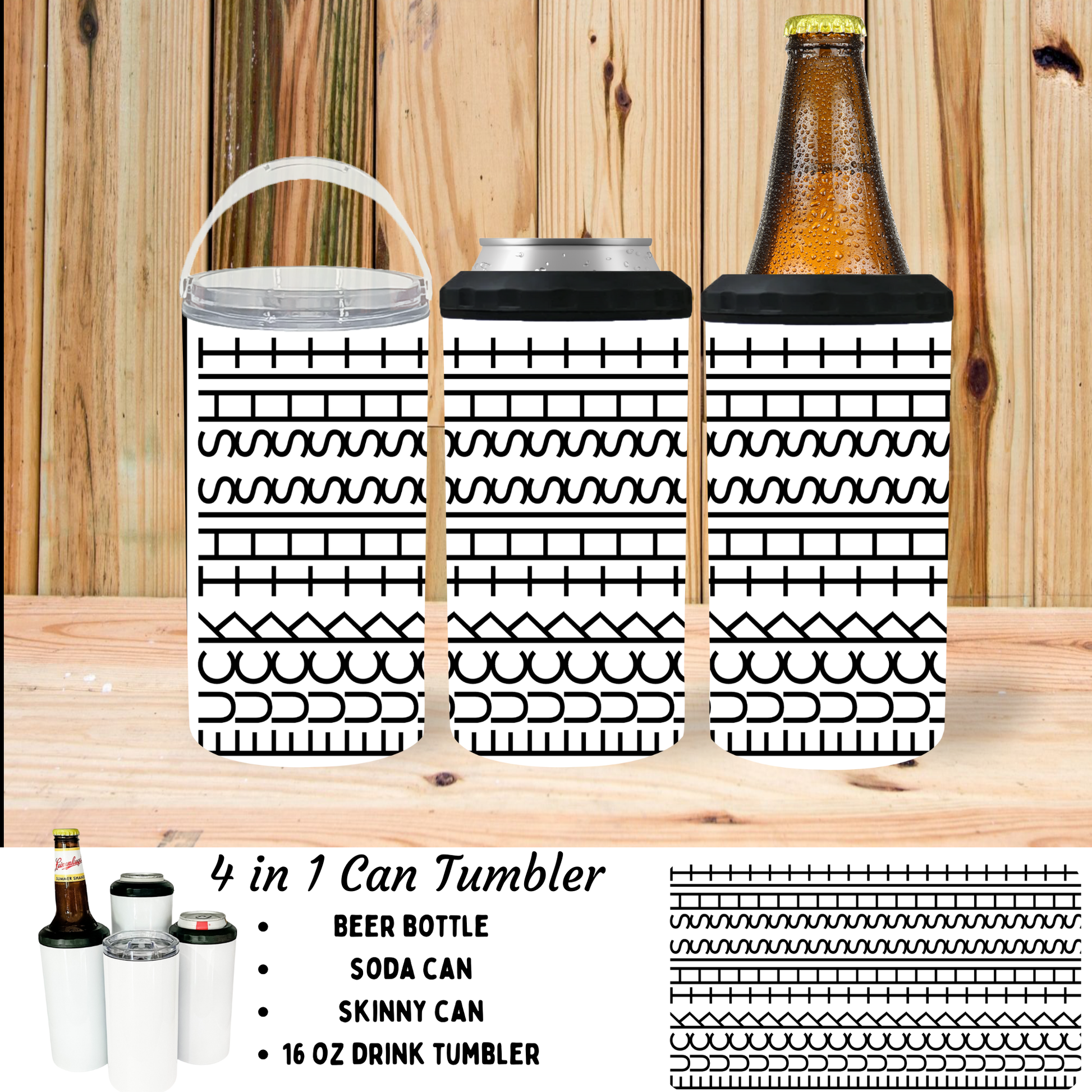 4-in-1 Versatility: It's like having four different types of tumblers within one! Use it as a skinny can cooler, standard can cooler, tumbler, or tumbler with handle.