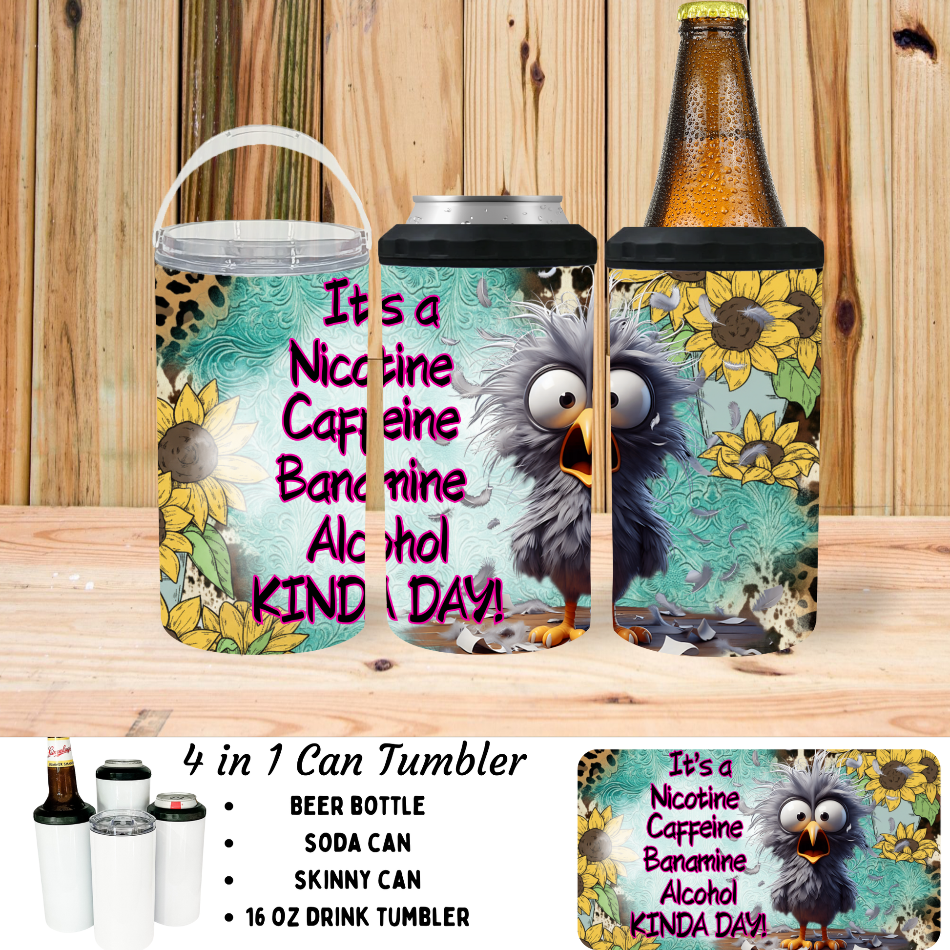 4-in-1 Versatility: It's like having four different types of tumblers within one! Use it as a skinny can cooler, standard can cooler, tumbler, or tumbler with handle.