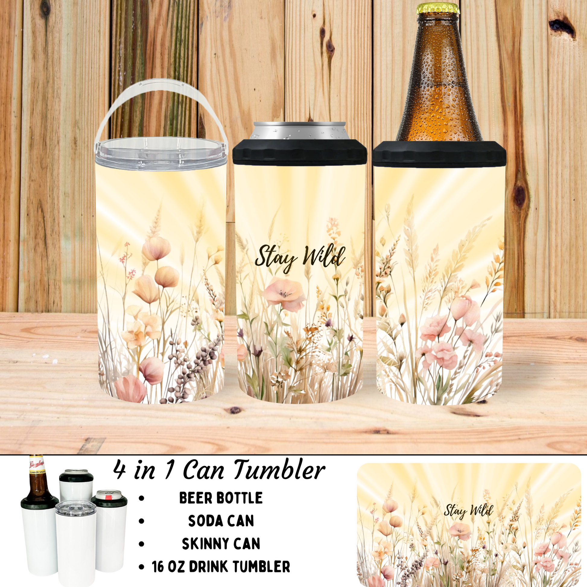 4-in-1 Versatility: It's like having four different types of tumblers within one! Use it as a skinny can cooler, standard can cooler, tumbler, or tumbler with handle.